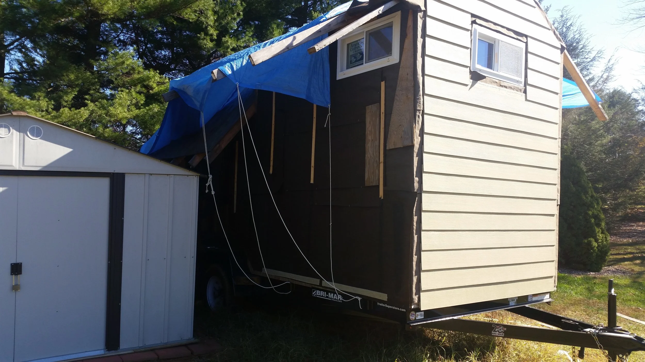 With three of the four walls sided, it is time to wrap up this project and transform the tiny house from a pile of peeling tar paper into a pretty to look at tiny house from all sides.